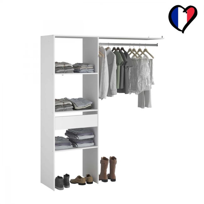 Elysee Dressing Blanc Avec 3 Etageres 1 Tiroir Et Une Penderie 160 X 40 X 180 Cm Leroy Merlin